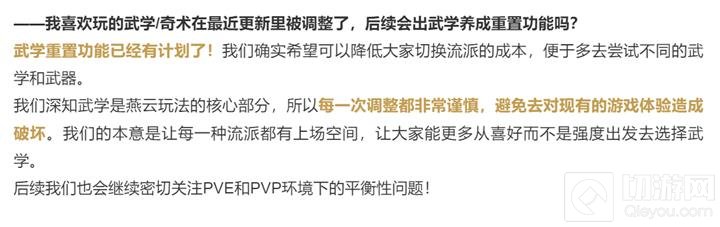 针对玩家关心的武学养成问题,开发团队也给出了积极回应。武学重置功能已经在计划之中,目的是降低玩家切换流派的成本,鼓励大家尝试不同的武学和武器。团队深知武学是《燕云十六声》的核心玩法之一,因此在调整时非常谨慎,以确保不会破坏现有的游戏体验。他们的目标是让每一种流派都有机会上场,让玩家能够根据自己的喜好而非仅仅基于强度来选择武学。同时,团队也会持续关注PVE和PVP环境下的平衡性问题。