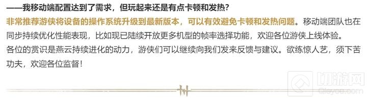 在移动端性能方面,开发团队建议玩家将设备操作系统升级到最新版本,以减少卡顿和发热问题。移动端团队也在持续优化性能表现,例如开放更多机型的帧率选择功能。