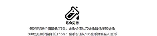 400层奖励价值降低了8%:金币价值从70金币降低至65金币