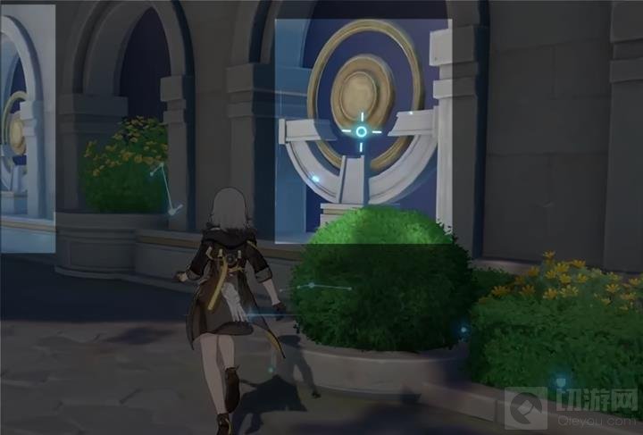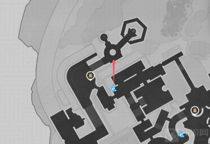 来到地图位置后我们可以看到这里有一个圆盘形的雕塑,提示可以打,我们点一下攻击打碎它即可。