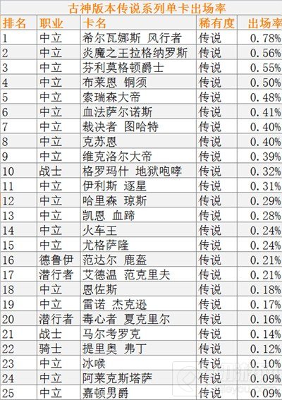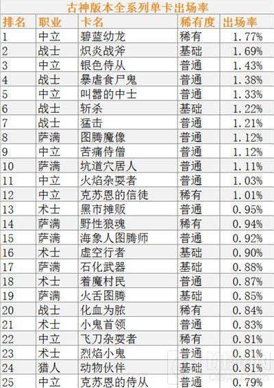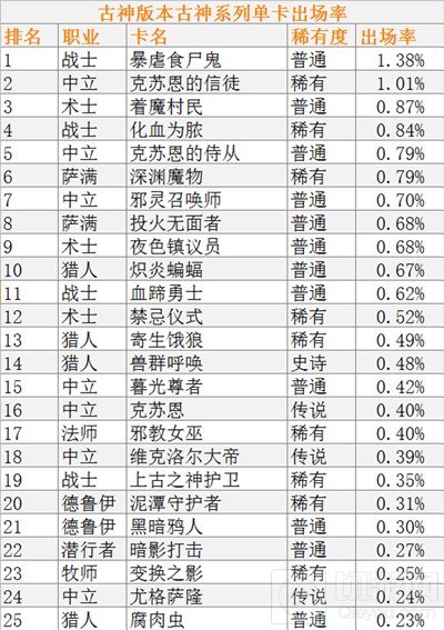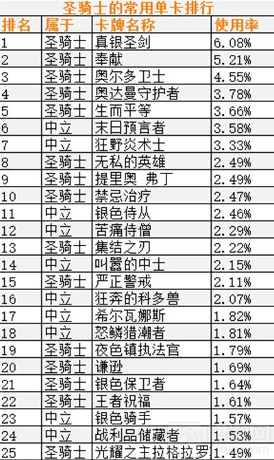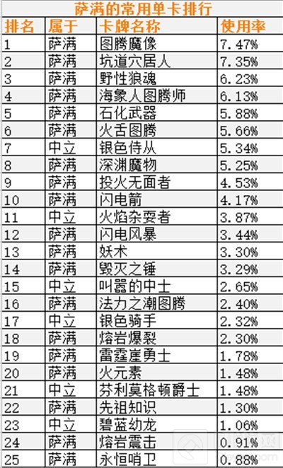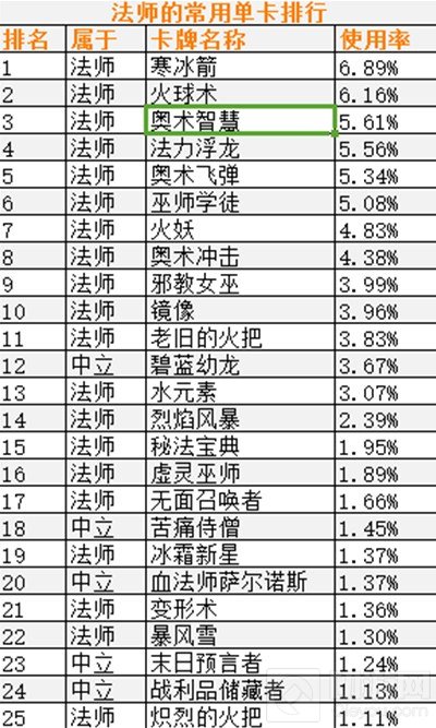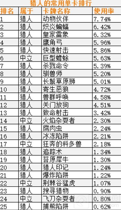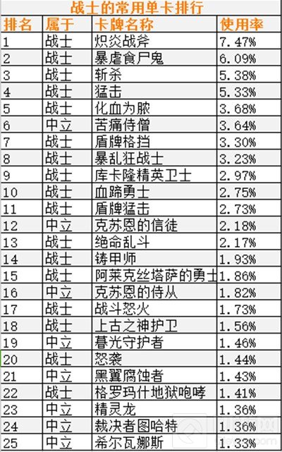 ②由于中立卡牌可被用于所有职业,它们也更加常用。此条适用于除各职业列表外的所有表单。