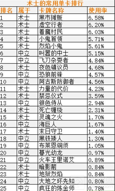 4.每个职业最常用的25张单卡