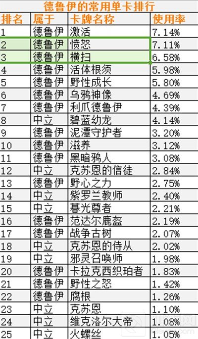1.上文的百分比代表了某一张单卡在我们统计的对局中所有卡牌里的出现频率。