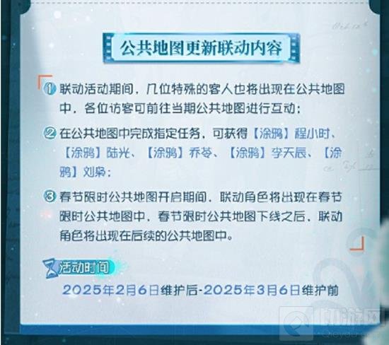 活动期间:几位特殊客人(联动角色)将出现在公共地图中,玩家可前往互动。