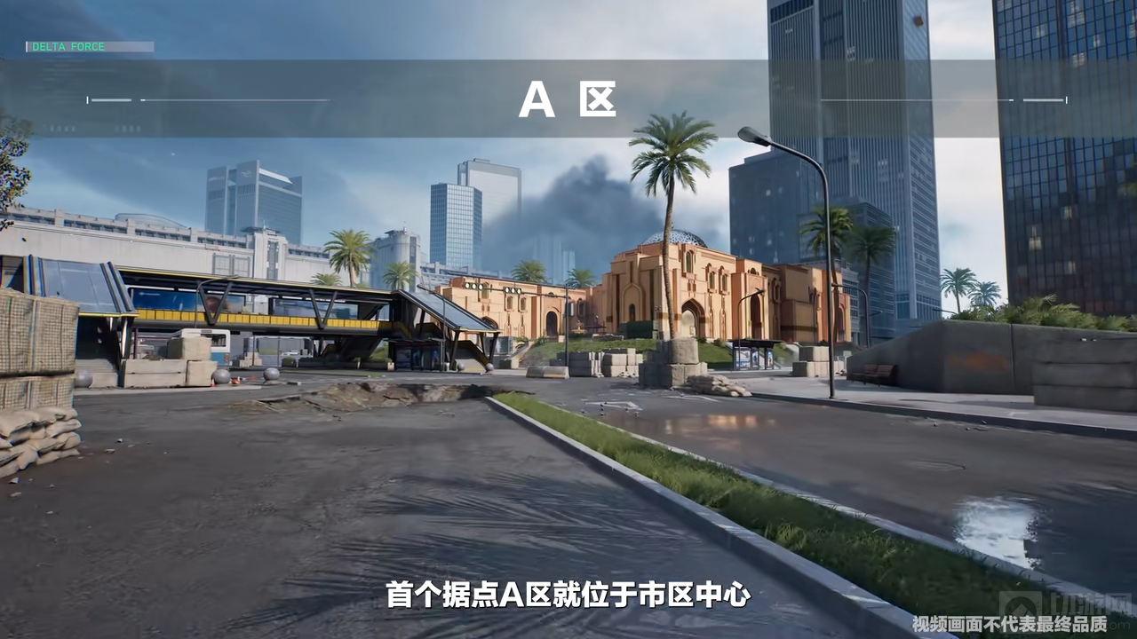 A区是战斗的第一站,位于城市的南部,重要的目标包括钻石皇后酒店。酒店处于A区的南部,周围被两侧高楼半包围,是进攻方需要尽快控制的重要据点。