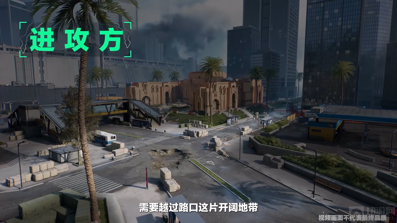 开阔地带突破:进攻方可以选择从路口的开阔地带突破,但这里暴露的风险较大。为了降低伤亡,可以将部分兵力分配到加油站一侧进攻。加油站提供了一些掩体,且距离A区据点较近。
