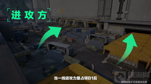 B1攻击:进攻方可以选择通过A1通道进攻B1,利用周围的掩体来压制B2。通过阻断B1与B2的联系,进攻方能够为A3通道的友军步兵创造安全进攻的机会。