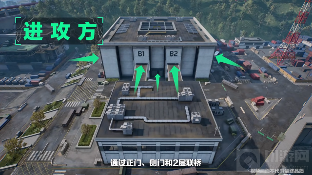 全力进攻:集中力量攻占C1后,进攻方可以通过正门、侧门和连桥对C2进行立体包夹,确保防守方无法有效应对多方进攻。