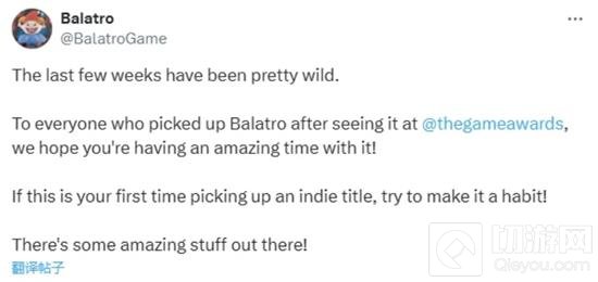 开发者LocalThunk在社交媒体上表示:“过去几周的经历简直太疯狂了,感谢所有在TGA之后购买《小丑牌》的玩家,希望你们玩得开心!”他还提到,《小丑牌》的成功不仅让他实现了财富自由,也让更多人开始关注独立游戏,这对整个行业来说是一个积极的信号。