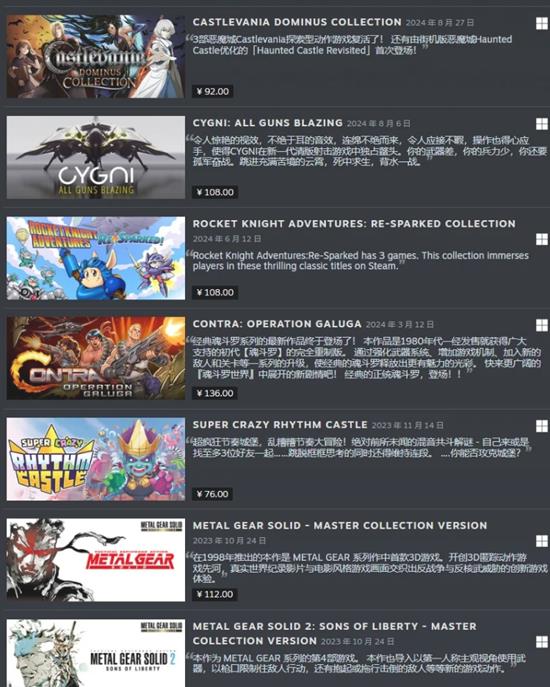 Konami近期在Steam国区解锁了多款经典游戏,其中包括备受期待的《寂静岭2:重制版》和《合金装备:大师合集Vol.1》。此外,还有《游戏王:决斗者遗产》系列以及《恶魔城》系列的部分作品也已正式上架。