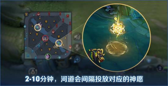 第2分钟,神愿将在河道刷新,刷新间隔为60秒。