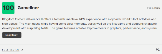 最近,Warhorse Studios旗下中世纪动作RPG《天国:拯救2》的媒体评分现已正式解禁,截至发稿前,《天国:拯救2》在M站的均分正式出炉,为87分。