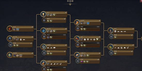 每个时代的科技树不同,玩家只能完成当前时代的科技树,无法跨时代研究,也就是说不会出现坦克打剑士的情况了。