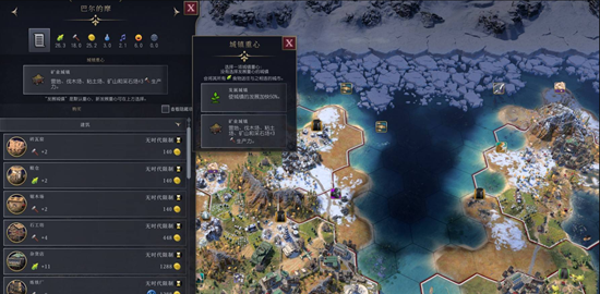 城镇在人口达标后可以选择城镇中心,让其变成一个矿业城镇或是堡垒城镇等等,还可以花费一定金额的钱让其转化为城市。