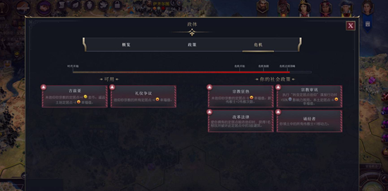 危机卡槽与可以理解为DEBUFF版的市政,随着时代前进,你需要选择不同的DEBUFF来进一步增加挑战。