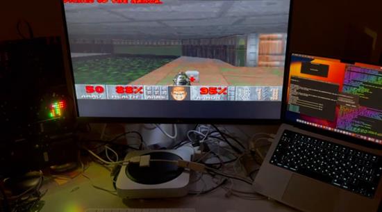 秉持着“万物皆可玩《毁灭战士》”的原则,开发者John(Nyan Satan)成功在苹果的Lightning转HDMI适配器上运行了这款经典游戏。由于Lightning接口带宽不足以传输1080P的HDMI视频,苹果在转接头内加入了SoC芯片用于压缩输出的视频,而这个转接头实际上运行了一个非常精简的迷你iOS系统。