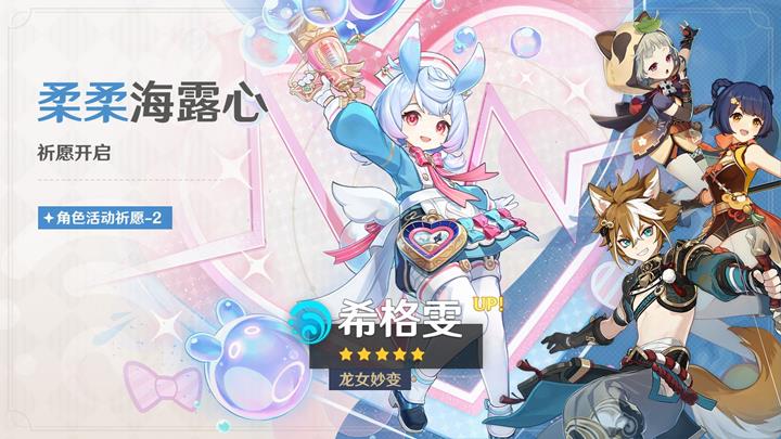 UP五星角色:梦见月瑞希(限定,再下一个版本转为常驻)、希格雯(限定,复刻)