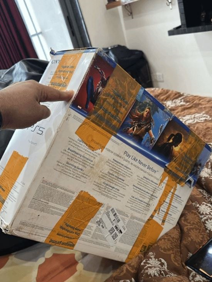他在亚马逊上购买了一台PS5,但收到货后发现包装盒状况糟糕,上面缠满了棕色胶带,且盒子上显示该主机是一年多以前生产的。Imcheeku意识到可能存在问题,于是第一时间联系了工作人员安排退货。