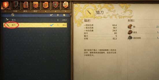 与锻造台互动,选择“猎刀”作为要锻造的物品。