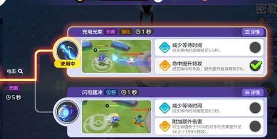 闪电猛冲这是密勒顿的核心技能之一。使用该技能时,密勒顿会向指定方向旋转身体猛冲,对沿途的对方宝可梦造成伤害并积蓄电力。如果短时间内积蓄两次电力,该技能可以强化,强化后的闪电猛冲可以瞄准指定目标,造成更高的伤害,对残血敌人还有额外的伤害加成。建议利用野怪或小兵来快速积累电力,强化技能后直接进场输出。