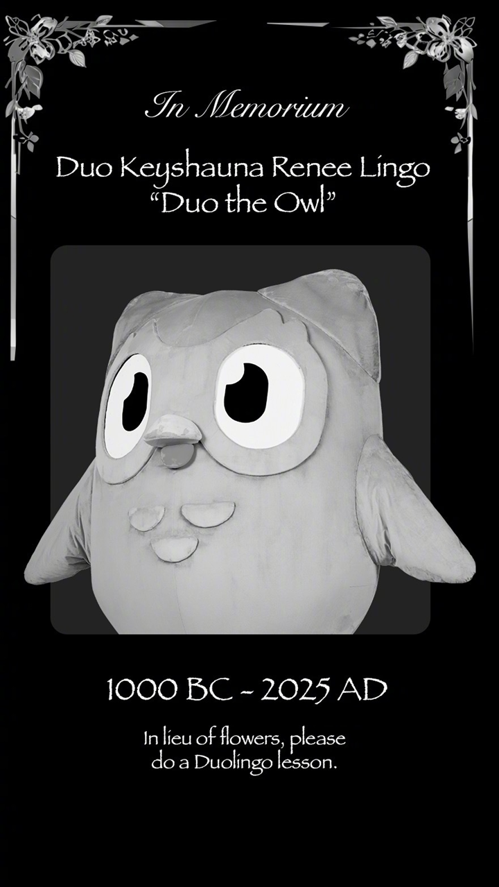 多邻国在其发布的讣告中提到,“当局正在调查他的死亡原因,我们全力配合。老实说,他可能是等着你完成课程时死去的,但我们也不太清楚。”