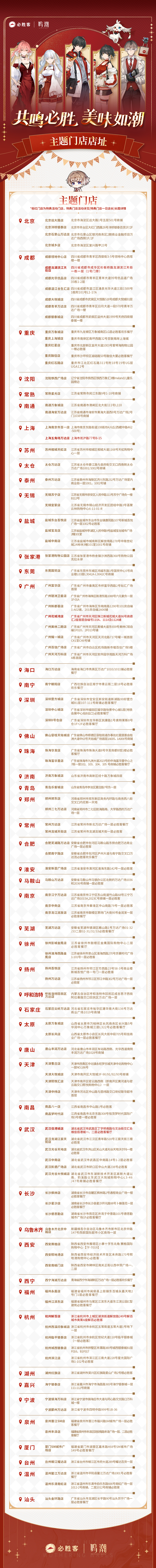 《鸣潮》与必胜客的联名活动即将在2025年1月16日开启!很多玩家可能还在查找有哪些主题门店参加联动活动,以下是参与活动的必胜客门店列表,快来看看你所在的城市是否有参与活动的门店吧!