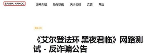 针对近期即将举行的《艾尔登法环:黑夜君临》网络测试,敝司观察到有不法团体利用敝司及《艾尔登法环:黑夜君临》的名义,捏造相关线下测试活动资格,发送不实诈骗讯息。