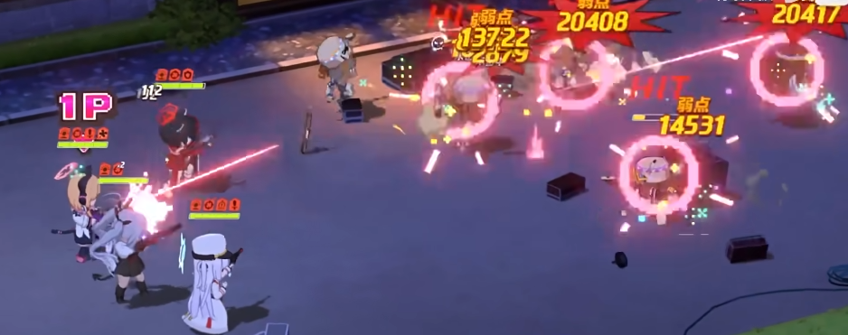 第二个技能则会甩出一枚炮弹,对中等范围内的我方全体学生造成超高伤害。只要将坦克提前拉倒 BOSS 身后就不需要担心了,阵容选择上,建议携带降防和位移坦克的学生来应对超高的防御力。