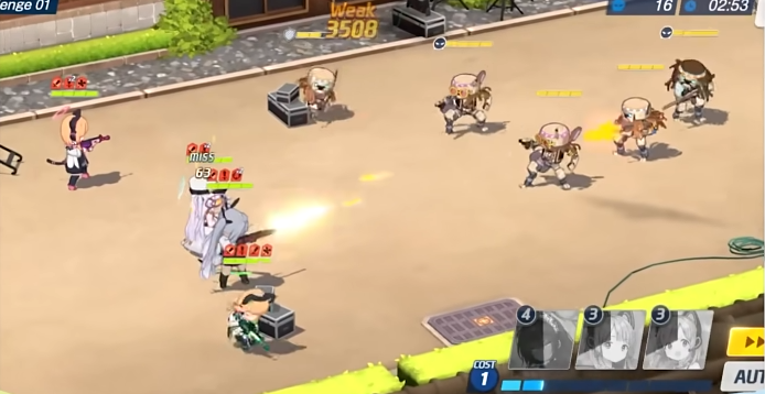 活动挑战的第一关为常规的 BOSS 小怪关卡,但关卡中会出现两个拥有强敌标记的嬉皮机器人,他们各拥有 999 万血,几乎无法被击倒,并且每隔一段时间会弹响手中的乐器,持续提高敌方全体成员的命中、攻速和攻击力,同时大幅度降低我方的命中和攻击力。