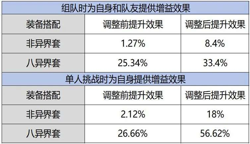 以下为11级侵蚀之普戾蒙调整前和调整后非异界套、八异界套时的收益情况: