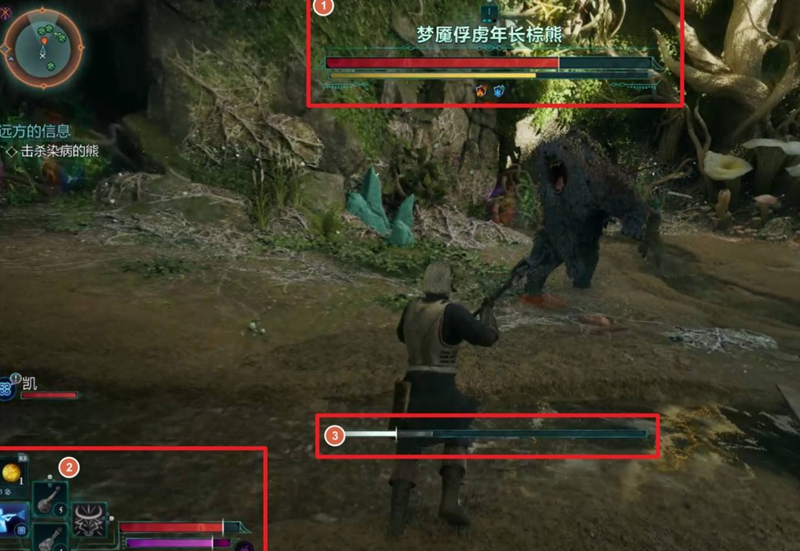 无法防御的攻击:某些敌人的重击玩家无法用防御抵挡,使用这种攻击时敌人面前会出现红色圆框提示,只能用闪避躲。