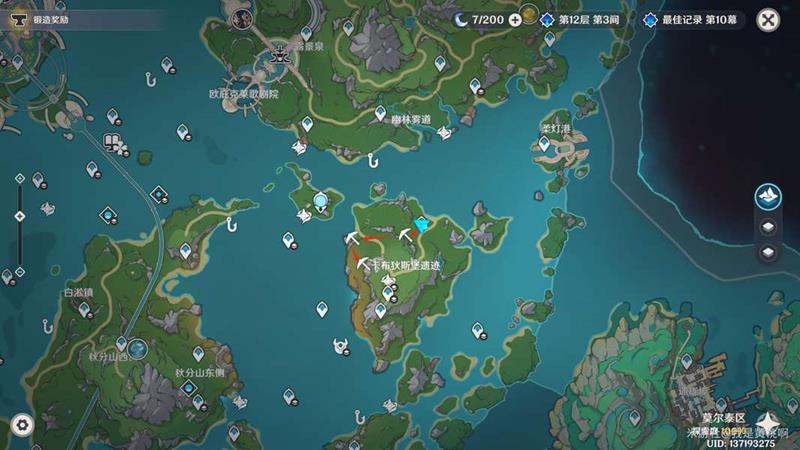 枫丹东部这里的散点很多,这里筛选出不低于3个白铁矿的路线,可以优先采集。