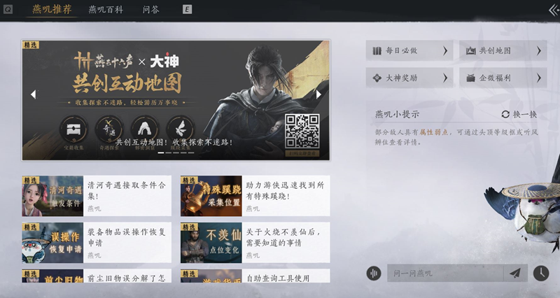 燕叽百科作为游戏内的信息集散地,将在3月版本中迎来重大升级。升级后的燕叽百科不仅会提供更全面的游戏机制介绍,还会增加更多关于门派背景、剧情线索和隐藏任务的详细信息,帮助玩家更好地探索江湖。