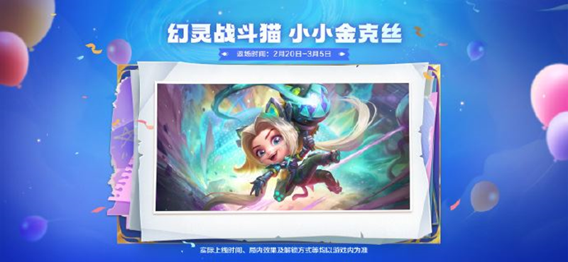 幻灵战斗猫小小金克丝、山海绘卷小小妮蔻、玉剑传说小小艾瑞莉娅、铲铲市足球场、演武场、粽子节的大龙舟、小小杰斯、小小金克丝、小小蔚等道具限时返场晶能召唤,弈士们可以召唤解锁以上道具。