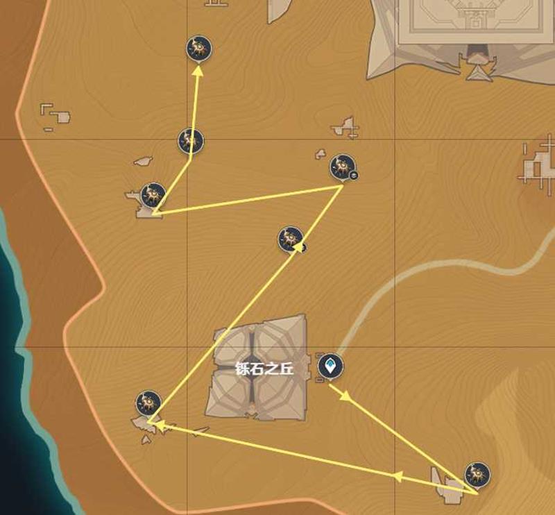 原神的圣金虫是栖息在浩瀚沙海之中的顽强甲虫。甲壳上的金色纹路似乎暗示着它们与遍布沙漠的古老遗迹间存在某种渊源。圣金虫可在须弥沙漠遗迹采集,下面是详细的圣金虫采集路线。