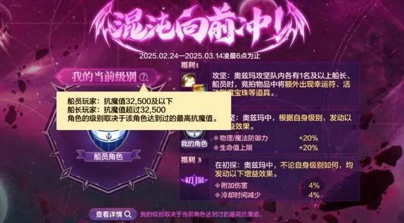 船员BUFF:20%物理/魔法防御力、20%生命值上限