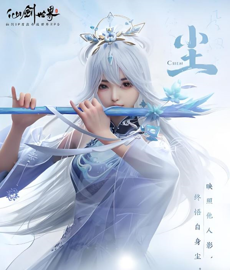 尘的默认武器为笛子(远程法器),技能以水属性法术伤害为主,核心机制是通过召唤“影徂”协同作战。