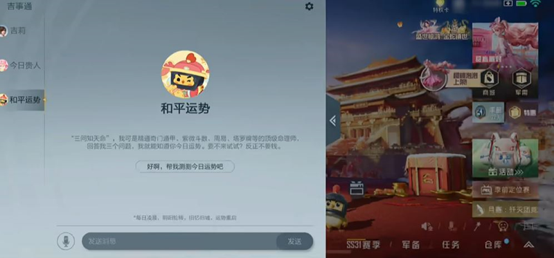 和平运势:基于游戏数据生成运势报告,包含胜率预测、开箱玄学建议等。这也让玩家在游戏中有更多趣味内容可以选择。