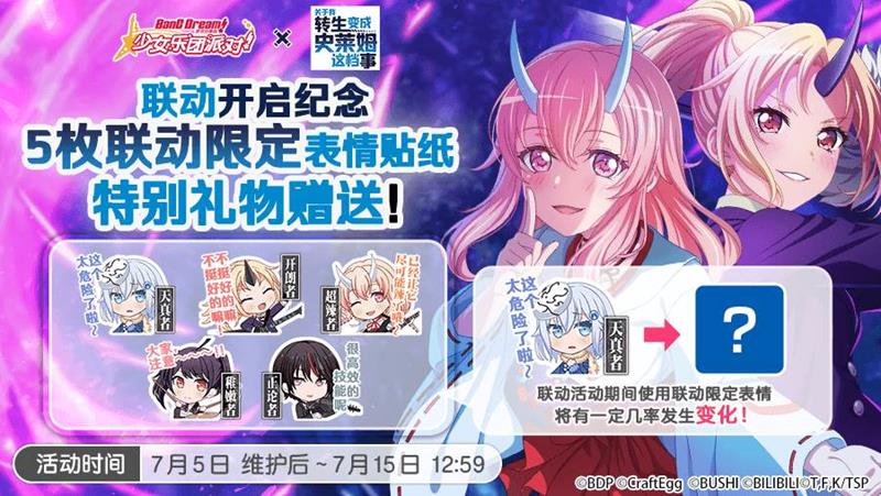 《BanG Dream! 少女乐团派对!》与人气动画作品《关于我转生变成史莱姆这档事》的联动活动即将复刻!官方宣布了联动的复刻安排,我们一起来看看。