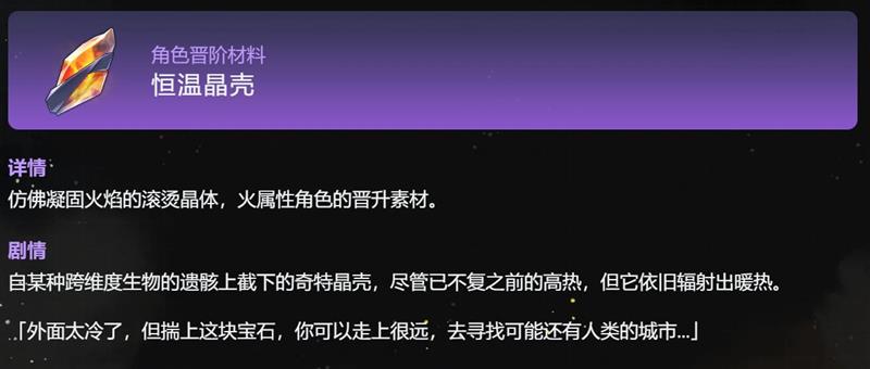 崩坏星穹铁道的恒温晶壳是一种角色晋阶材料,很多开拓者想要知道崩坏星穹铁道的恒温晶壳有哪些用途,我们一起来看看吧。