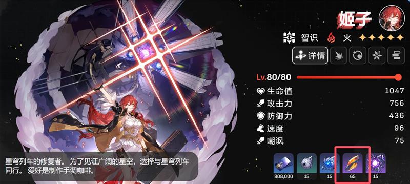 姬子的角色升阶(突破)累计需要消耗65个恒温晶壳;