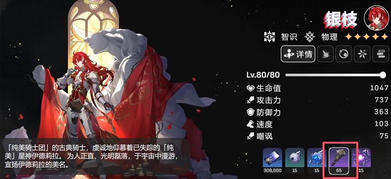 银枝的角色升阶(突破)累计需要消耗65个幽府通令;