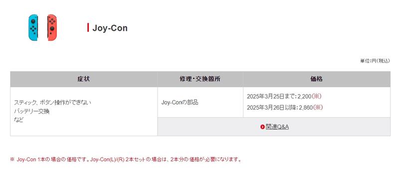 对于玩家常用的Joy-Con手柄,单个手柄的维修费用从2200日元(约108元人民币)上涨至2860日元(约140元人民币)。如果需要维修一对Joy-Con(L/R),则需要支付双倍的费用。