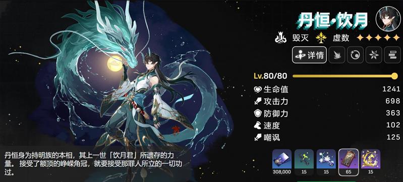 丹恒饮月的角色升阶(突破)累计需要消耗65个镇灵敕符。