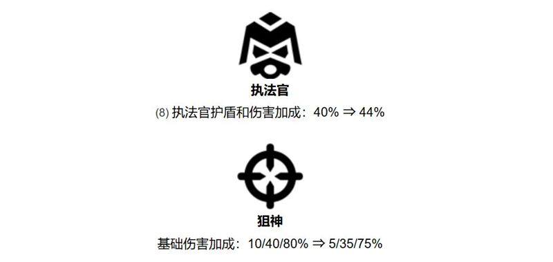 执法官护盾和伤害加成:从40%提升至44%。