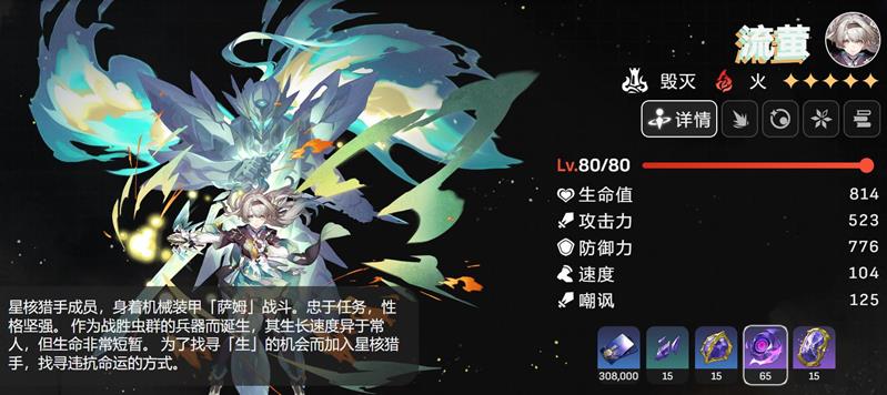流萤的角色升阶(突破)累计需要消耗65个忿火之心;