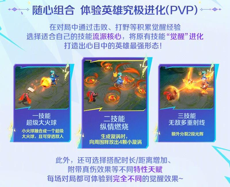 此外,玩家还可以选择搭配时长/距离增加、附带真伤效果等不同特性天赋,每场对局都能体验到完全不同的觉醒效果。