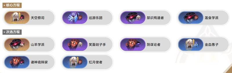 天空祭司、巡游乐团、禁识殉道者、莲食学派