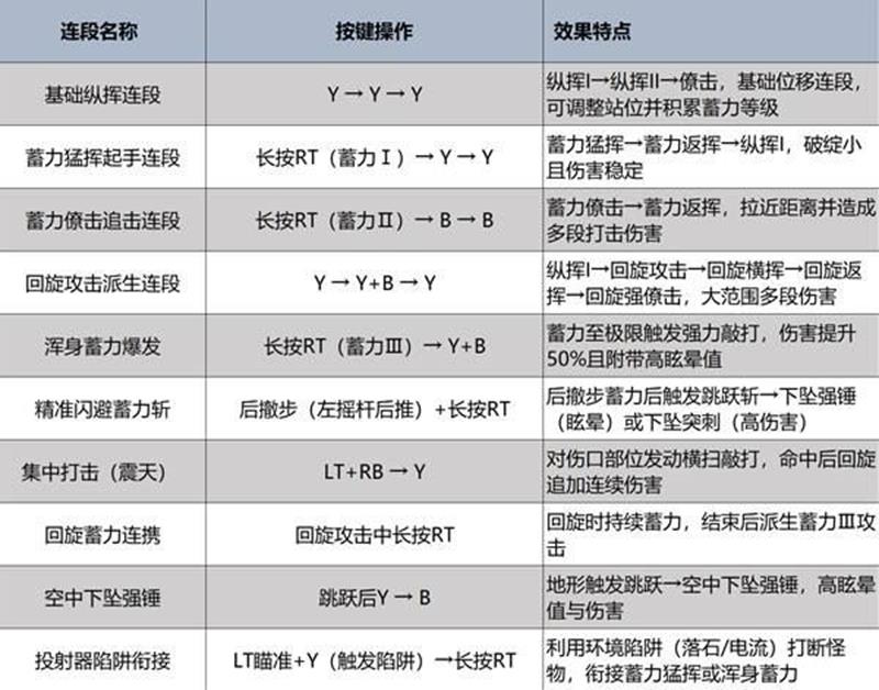 新增的「蓄力重击」优化了攻击判定范围与伤害倍率,蓄力三段(大地一击)对弱点部位的单次伤害跃居全武器前三。