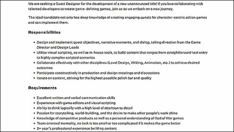 这一要求暗示了新项目与《战神》系列的紧密关联,引发了众多猜测。